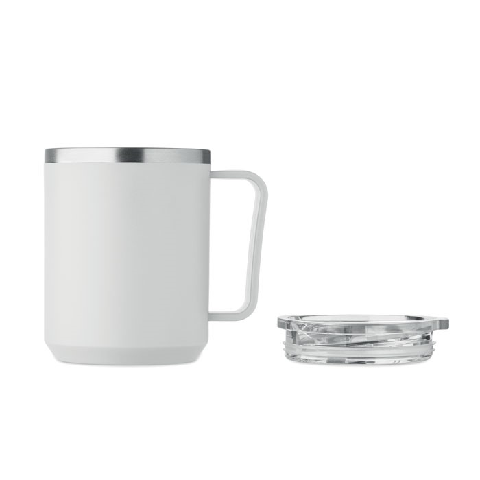 Ez a dupla falú bögre a tartós rozsdamentes acél belső részét könnyű, újrahasznosított külső héjjal ötvözi, praktikus, csúszó fedéllel a kényelmes kortyolgatás érdekében.