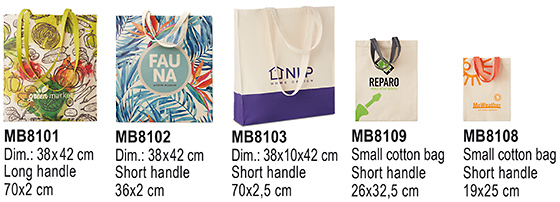 Más méretű és kivitelű, kiegészítő fogantyúkkal ellátott pamuttáskák is kaphatók.