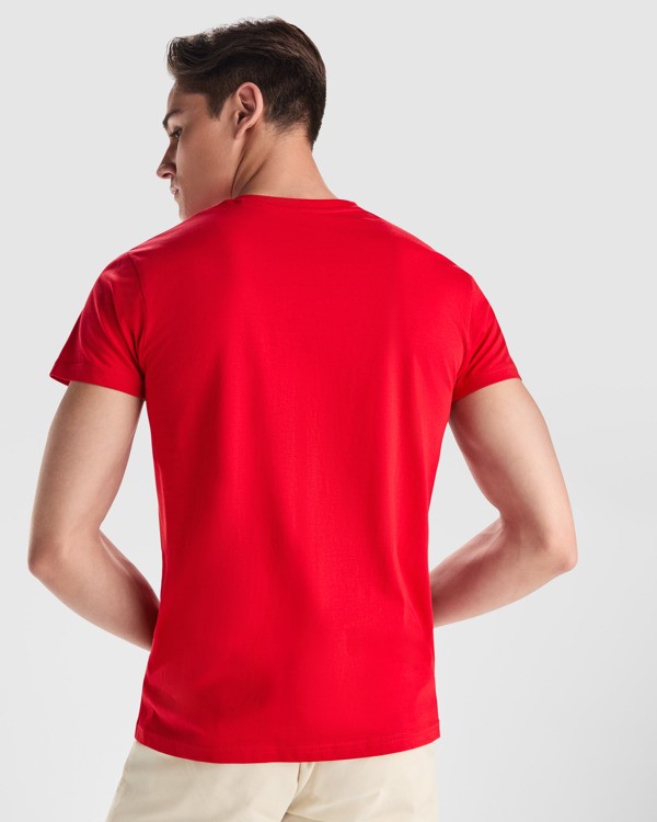 Rövid ujjú V-nyakú póló 4 rétegű nyakrésszel, megerősített fedett varrással nyaknál és a vállakon, oldalvarrással.