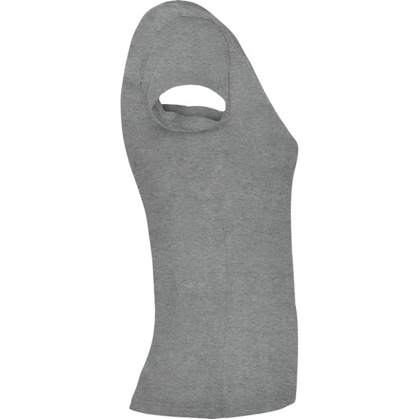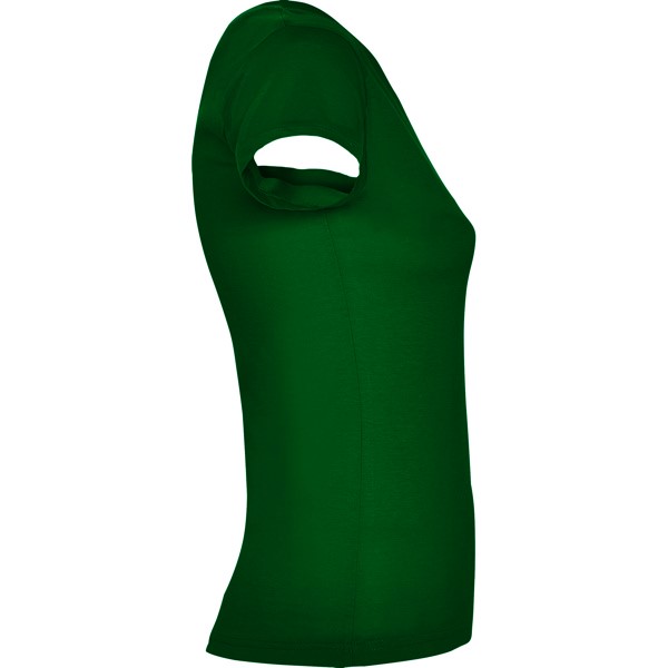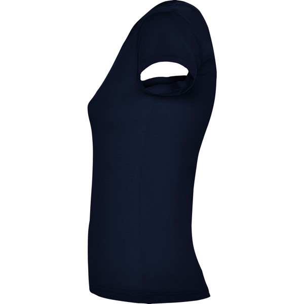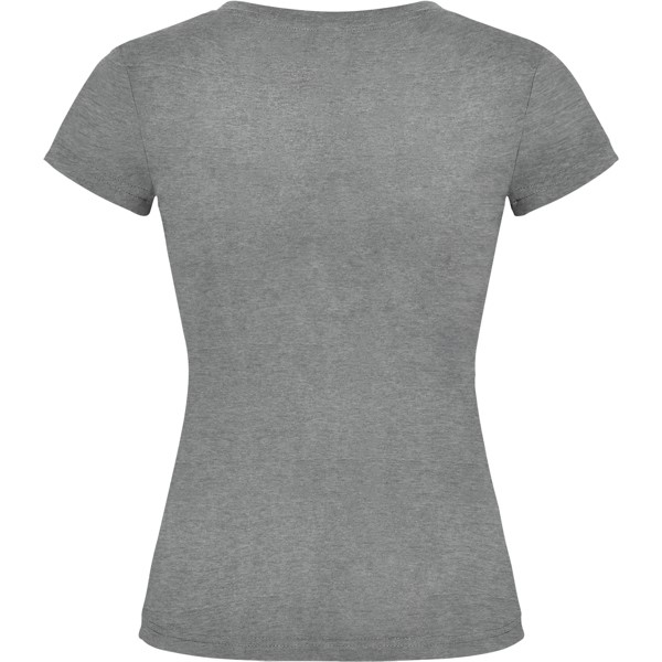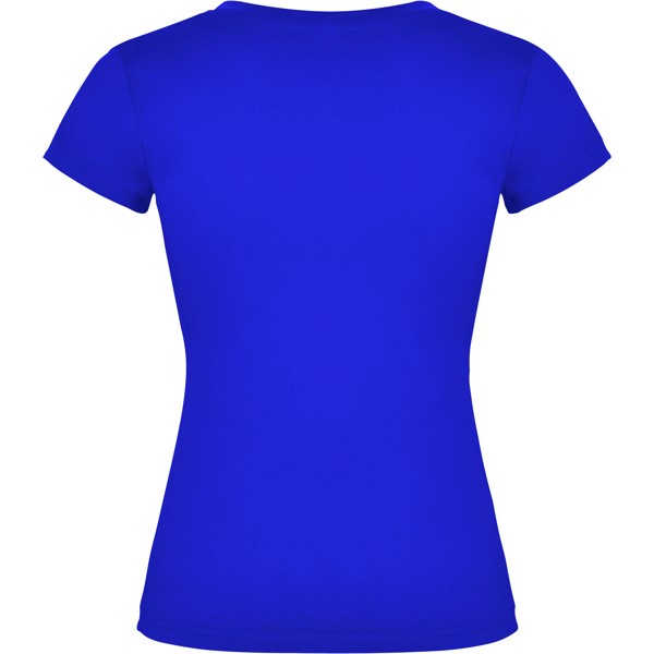 Női V-nyakú rövid ujjú póló, karcsúsított fazon, oldalvarrással.
