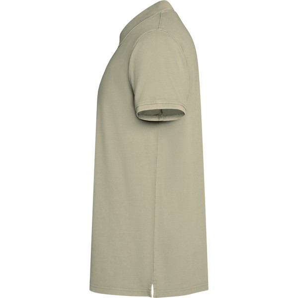 Kialakítás: piké öltés, 1x1 szőtt nyak és ujjak. 3 gombos gombolás, ragasztott nyakkivágás hozzá illő anyagból. Oldalsó hasítékok az alsó szegélyen a fokozott kényelem és mozgásszabadság érdekében.