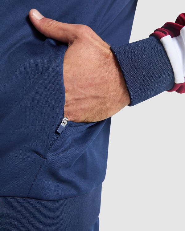 Kialakítás: két oldalsó zseb cipzárral. 1x1 bordázott gallér, mandzsetta és szegély. Kontrasztos színű, ragasztott nyakkivágás. Kontrasztos színű, csíkos ujjak. Az URUS nadrághoz illő színválaszték.
