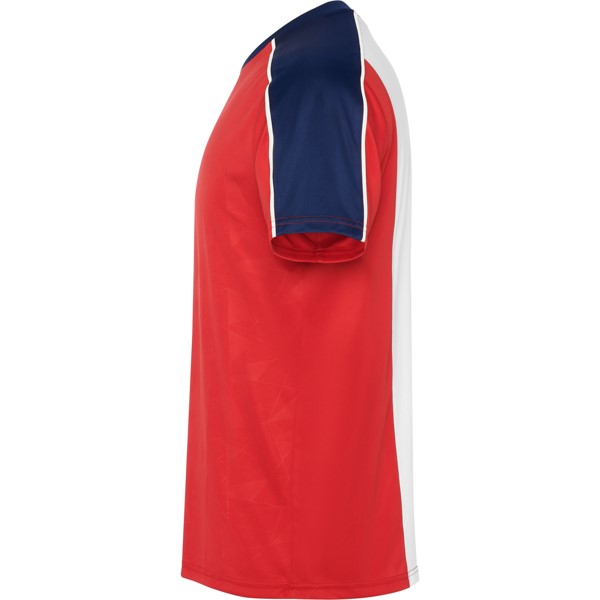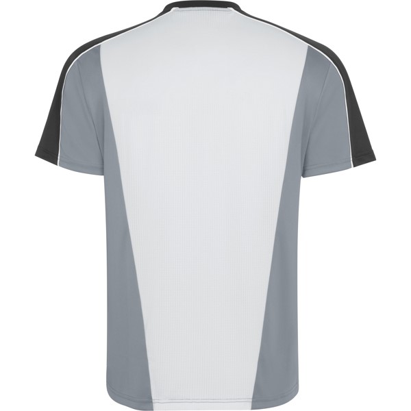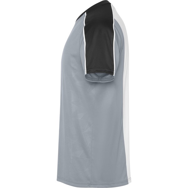 Kialakítás: nyomtatás az elülső panelen. Raglan ujjvarrásoknál szegély. Hálós részlet a hát közepén, szabadon hagyva a testreszabáshoz. Fő anyagból készült nadrág légáteresztő oldalsávokkal . Kontrasztos szegélyek.
