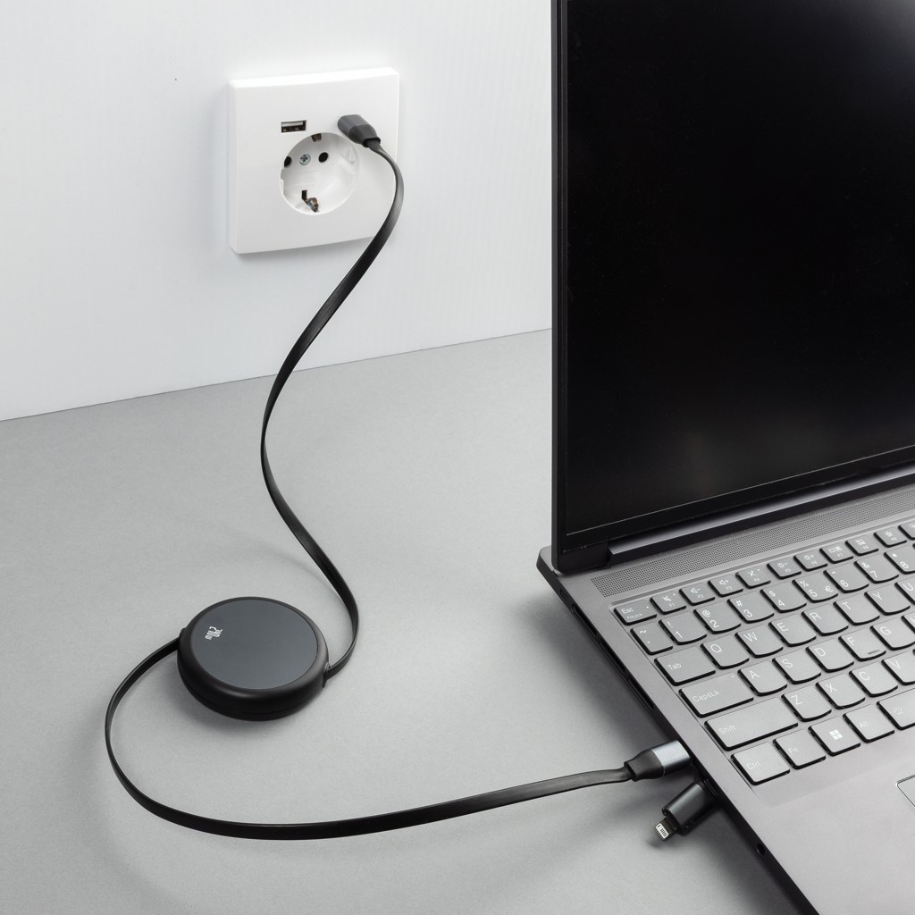 Nagy teljesítményű, visszahúzható töltőkábel az ultragyors töltéshez – A Terra USB-C bemenettel és kettős kimenettel (USB-C és iOS) akár 240 W-os teljesítménnyel is táplál mindent, a telefonoktól a laptopokig.