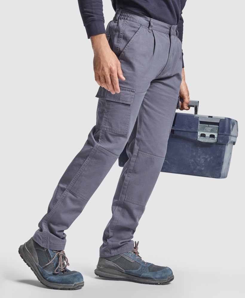 Hosszú nadrág, erős pamutszövetből: 1. Hátul rugalmas, állítható derékrész. 2. Két elülső zseb. 3. Ráhajtókás, tépőzáras farzseb. 4. Két hajtókás, tépőzáras oldalzseb. 5. Dupla megerősítésű szélek. 6. Dupla szövetű térdrészek.